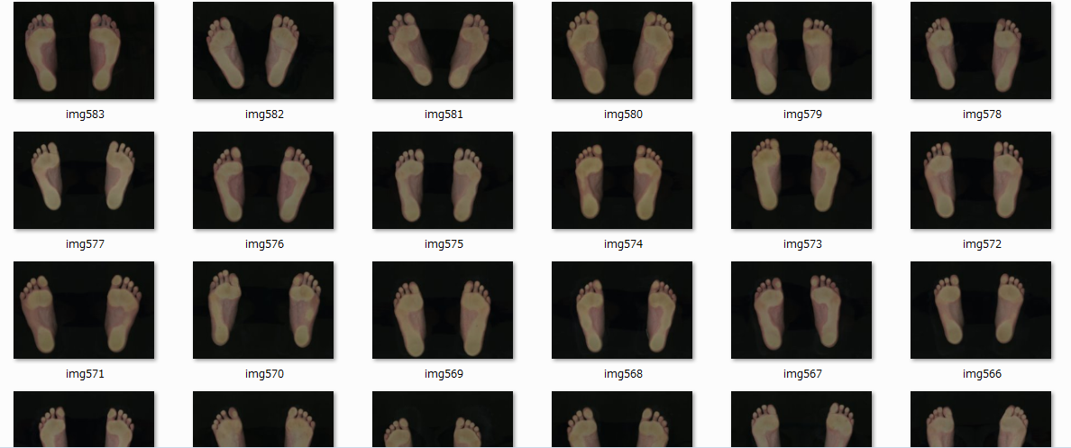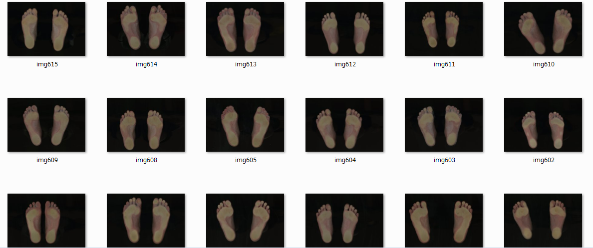 どれも当サイトを運営しているPlus-Rで使用している足の検査機材の一つで撮影した足の生データが記録されているフォルダのスクリーンショットです。